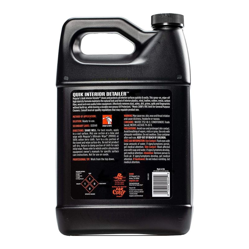 Solutia de curățat interior MEGUIAR'S Quick Interior Detailer (3.78 l) este perfectă pentru întreținerea rapidă și eficientă a interiorului vehiculului. Această formulă premium îndepărtează praful, murdăria și petele, lăsând suprafețele curate și cu un finisaj mat, fără a lăsa urme sau reziduuri.