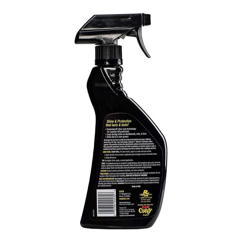 Descriere: Ultimate Protectant de la MEGUIAR'S este o soluție special concepută pentru a proteja suprafețele interioare ale vehiculului. Această formulă avansată oferă o protecție eficientă împotriva razelor UV, murdăriei și decolorării, păstrând aspectul proaspăt și îngrijit al interiorului.